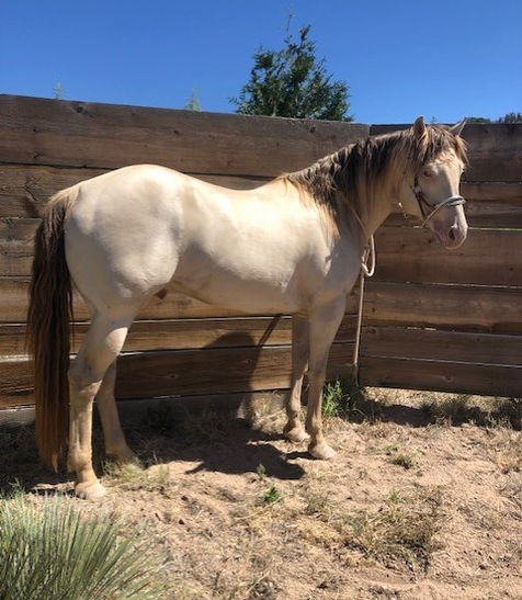 Arrow was started under saddle as a 3yr old with natural athletic ability and cowsense!! We will further his training with age. His pedigree includes performance stars like High Brow Hickory, Docs Prescription, and Peppy San Badger. This beautiful stallion is homozygous champagne, guaranteeing that no matter the mare he is crossed on will result in a champagne foal! His first foals are just being started under saddle and doing fantastic!! They are all stunning to boot! Arrow is not being offered to the public at this time.